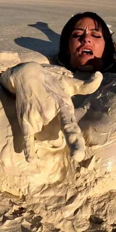Wetandmessyfun KT got rubbed down on an inflatable covered with molasses by Stacey