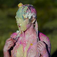 Messymissmia got rubbed down on an inflatable covered with pies by MrMuck